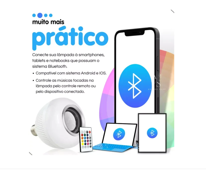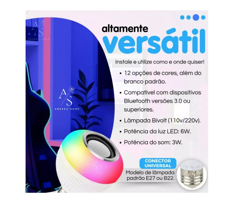 1- Lâmpada LED C/ Alto Falante Bluetooth